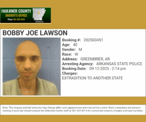 On Friday, September 12, 2025, Arkansas State Police (ASP), Homeland Security Investigations, and the Greenbrier Police Department, arrested Bobby Joe Lawson, age 40, of Greenbrier. Read more below. There were on warrants issued for Lawson’s arrest by Asheville, North Carolina. The charges are for Statutory Sex Offense with a Child Under 15 and Indecent […]